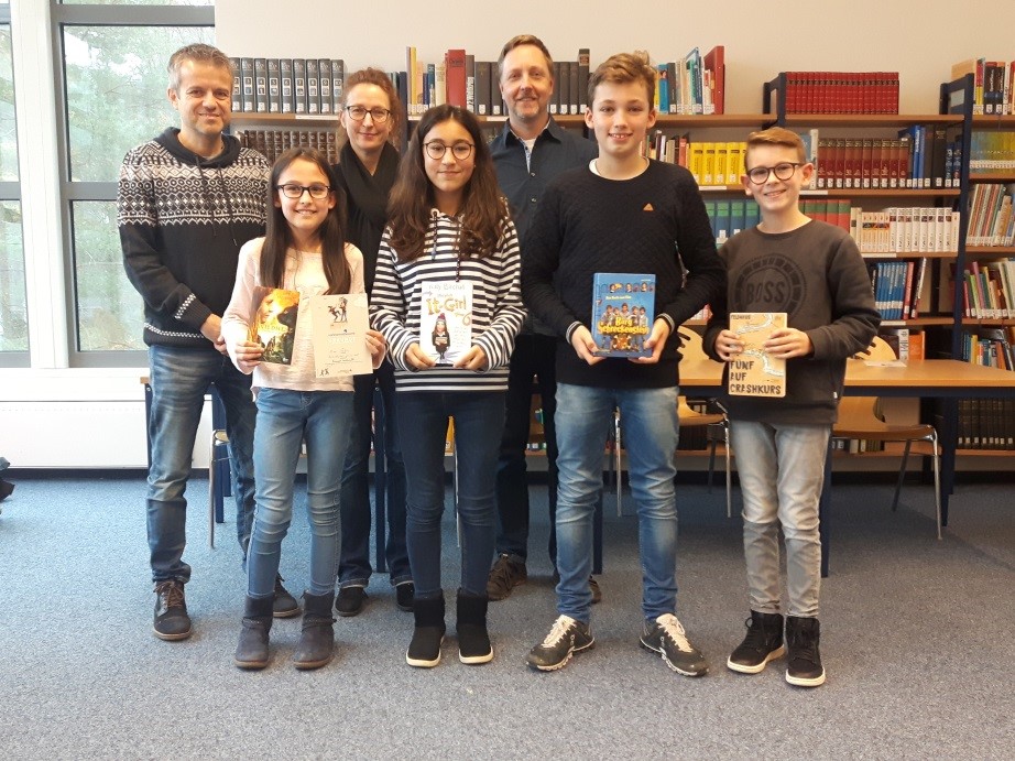 Auch dieses Jahr war es ein eindrucksvoller Wettbewerb zwischen den besten Leserinnen und Lesern der sechsten Jahrgangsstufe. Die vier Finalteilnehmer wurden vorab klassenintern ermittelt und am 21. November war es dann so weit: Mina Strelen aus der 6h, Phil Könnel aus der 6s2, Alara Koca aus der 6s3 und Liam Schuba aus der 6s1 traten vor ausverkauftem Haus, die Bibliothek unserer Schule platzte aus allen Nähten, zum Endspiel an.