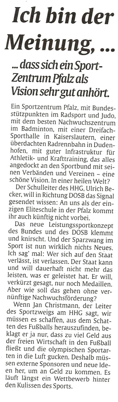 Klaus D. Kullmann: "ich bin der Meinung, dass sich ein Sportzentrum Pfalz als Vision sehr gut anhört"