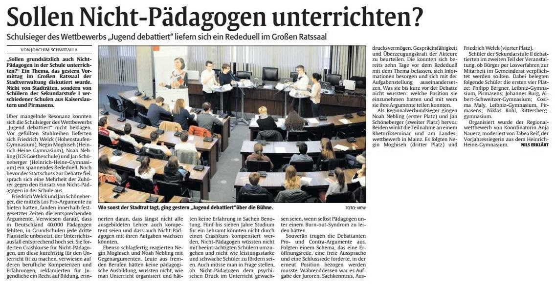 Jugend debattiert: Sollen Nicht-Pädagogen unterrichten?