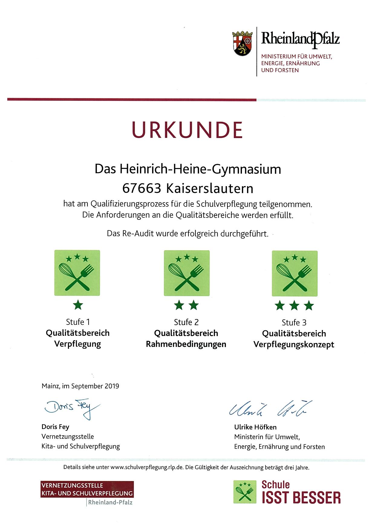 Erfolgreicher Re-Audit der Schulverpflegung am HHG