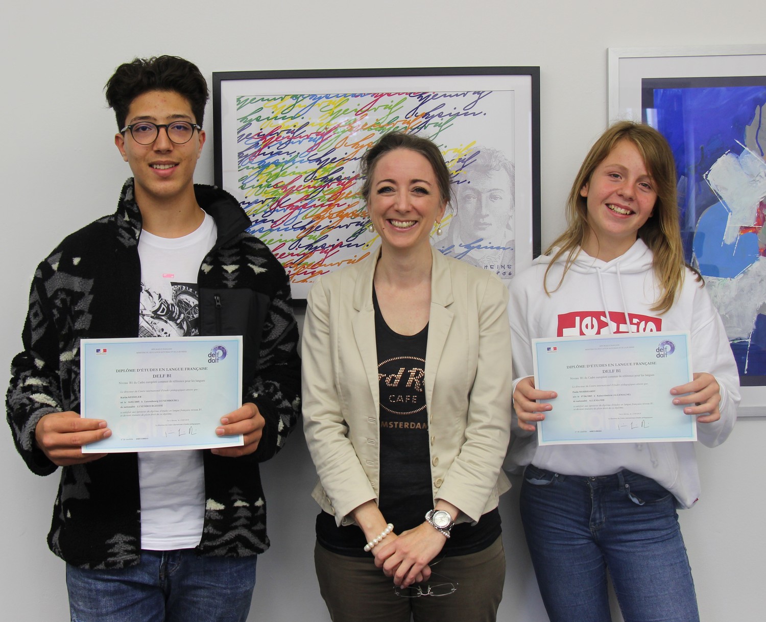 Im Januar und Februar legten Paula Mohrhardt (jetzt 11h) und Karim Kesseler (jetzt 12h) die DELF-Prüfung B1 am Heinrich-Heine Gymnasium und am Institut français in Mainz ab. Beide erreichten in den Prüfungsteilen Compréhension orale et écrite sowie Production orale et écrite herausragende Ergebnisse. Jetzt erhielten sie das vom französischen Bildungsminister unterschriebene Diplom. Herzliche Gratulation zu dieser tollen Leistung! (Bx/Em)