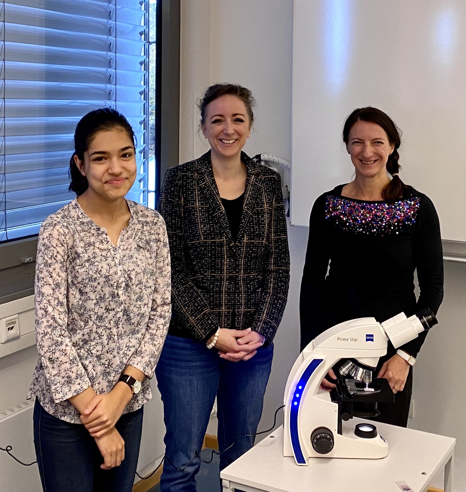 Am heutigen Vormittag kam Frau Koenen von der Carl Zeiss Microsocopy GmbH in Jena mit einigermaßen schwerem Gepäck nach Kaiserlautern: Im Namen ihrer Firma überreichte sie unserer Schule ein Primo Star Lichtmikroskop in Anerkennung der Leistungen Tara Moghisehs als Bundessiegerin bei Jugend forscht. Herr Dr. Becker begrüßte Frau Koenen offiziell und bedankte sich herzlich bei ihr und Zeiss - ein solches Geschenk stelle eine besondere Würdigung einer individuellen Schülerleistung dar und sei zugleich ein tolles Geschenk für die gesamte Schulgemeinschaft.