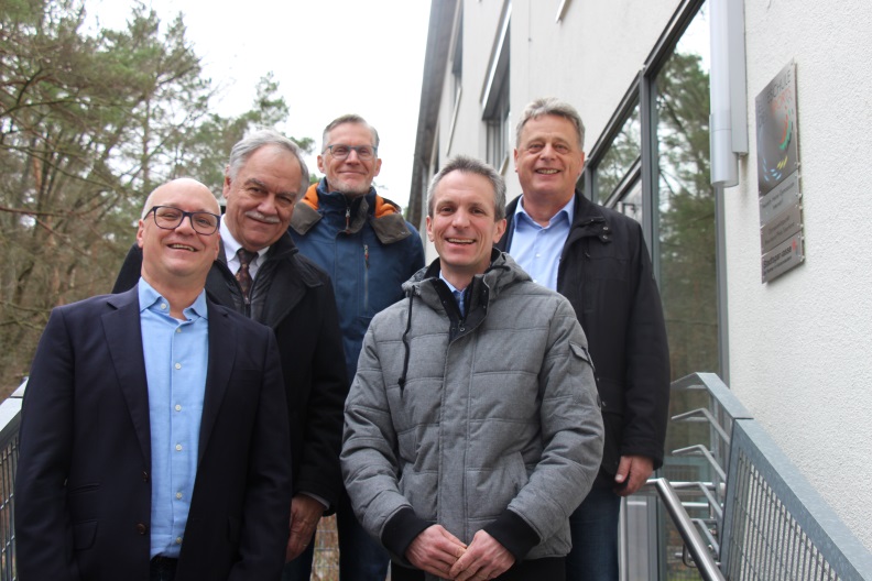 Gruppenfoto vor Internat I mit (v.l.n.r.) Olaf Röttig, Karl Peter Bruch, Josef Schüller, Jan Christmann und Dr. Ulrich Becker