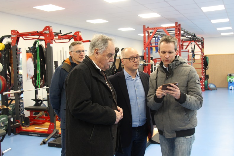 Auf dem Rundgang über das Schulgelände zeigten sich die Besucher sehr beeindruckt von den sportlichen und schulischen Möglichkeiten, den Planungen zum Bau einer Sporthalle am Leistungszentrum Kaiserslautern sowie den barrierefrei gestalteten Räumen in Schule, Sporthallen und Internaten. Der modern ausgestattete Athletikraum, die Regenerations- und Physiotherapiemöglichkeiten sowie das Großlaufband fanden hierbei ihr besonderes Interesse. Beide wollen sich engagiert dafür einsetzen, dass diese idealen Bedingungen auch von aussichtsreichen Behindertenleistungssportlern genutzt werden. (Be)