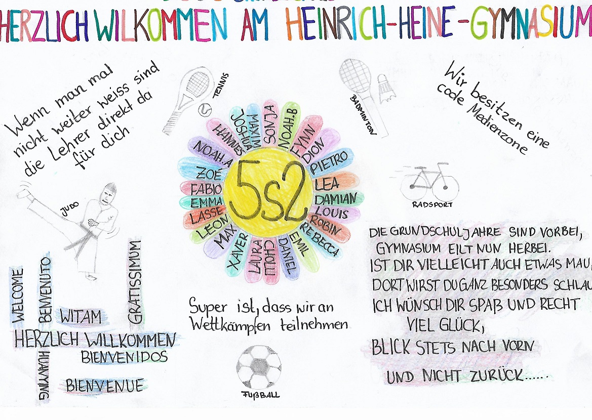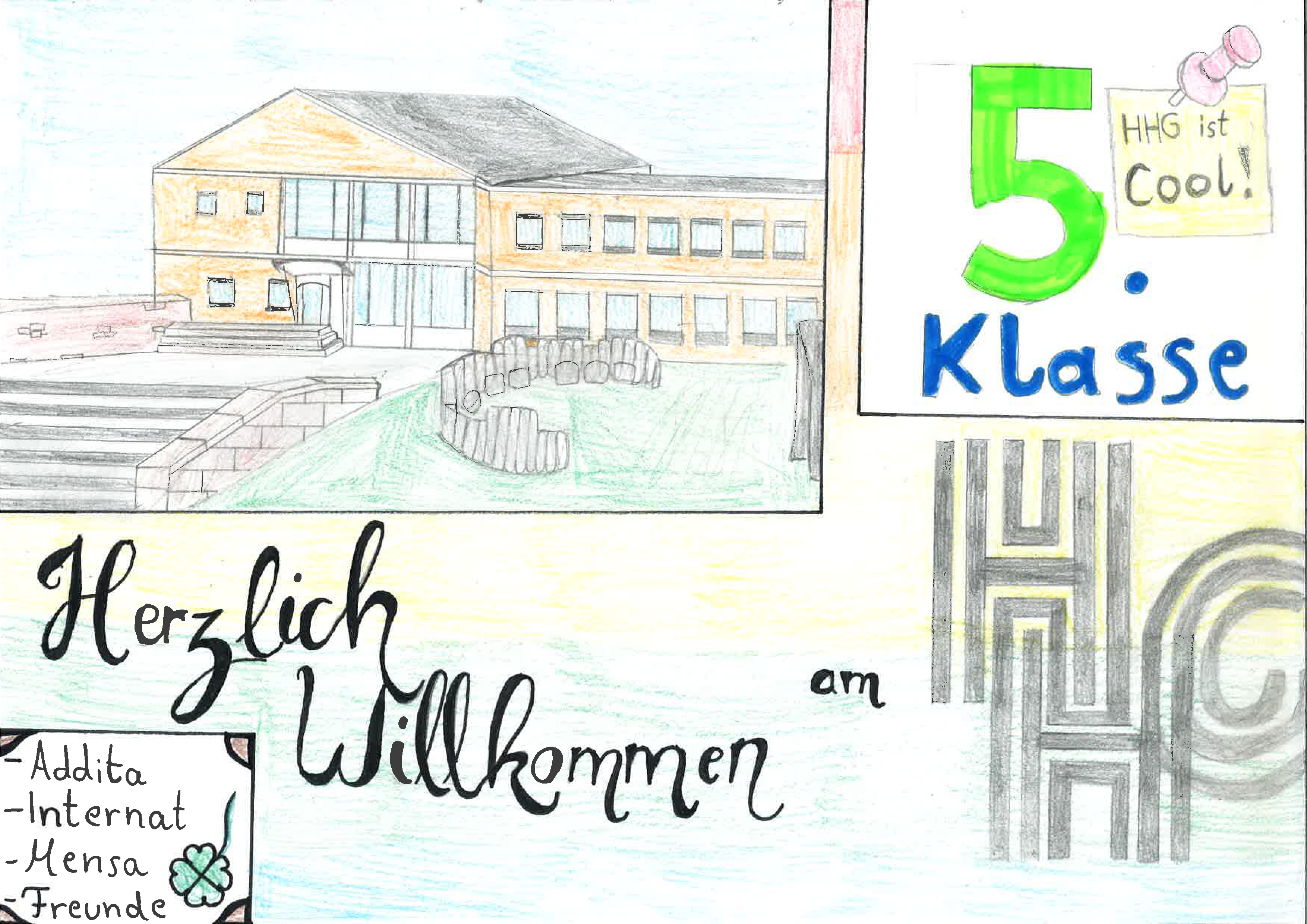 Üblicherweise erhalten an unserer Schule alle zukünftigen neuen Fünftklässler ein persönliches Anschreiben durch die ihnen zugeordneten Patenkinder derjenigen Fünftklässer, die ihr erstes Jahr am HHG gerade beenden. Als Alternative zu dieser schönen Tradition wurde zur Zeit der corona-bedingten Schulschließung ein kleiner klasseninterner Wettbewerb mit digitaler Einsendung veranstaltet und das Bild des jeweiligen Klassengewinners wurde zusammen mit dem Informationsschreiben von Frau Barth und Herr Wagner per Post versendet. Hier möchten wir nun die Bilder der Klassensieger (zuerst genannt) und der Zweitplatzierten mit Ihnen und euch teilen. Herzlich Willkommen am Heinrich-Heine-Gymnasium Kaiserslautern!