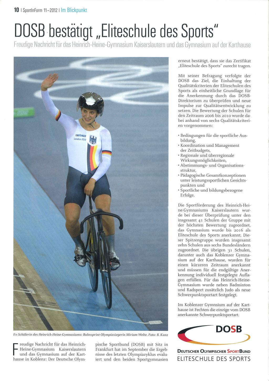 DOSB bestätigt "Eliteschule des Sports" 27.11.2012 Mit freundlicher Genehmigung von Fotoagentur Kunz.