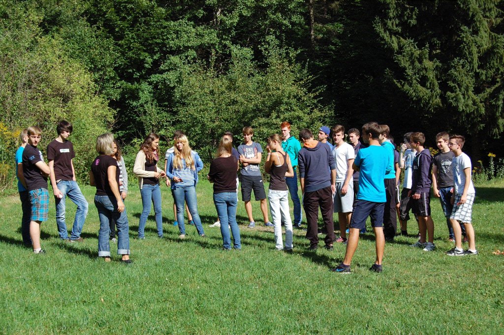 Drei Tage für Teambuilding und Sozialkompetenztraining Am 28. August startete die Klasse 10a für drei Tage in das CVJM- Waldhaus Kirschtal, mit-ten im Pfälzer Wald, um die Klassengemeinschaft zu stärken, Zusammengehörigkeitsgefühl aufzubauen und Konflikte zu entschärfen.