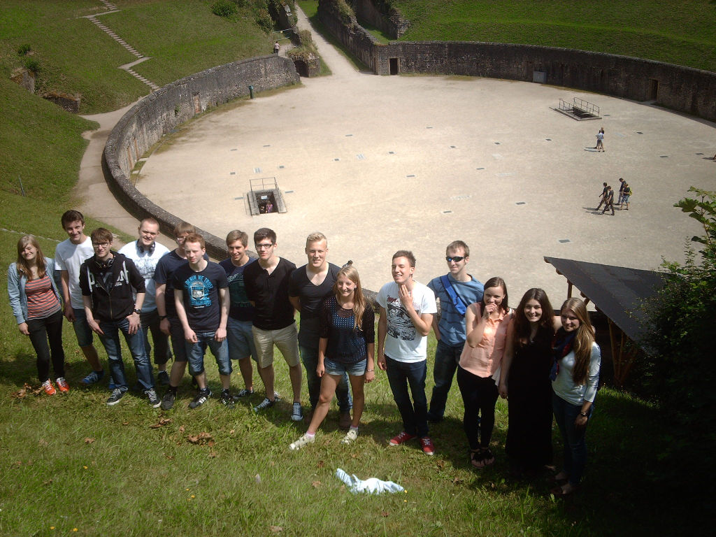 Kurz vor den Sommerferien unternahmen Schüler und Schülerinnen der Latein-neu-Kurse 11 und 12 mit ihrem Lehrer Herrn Bennent eine Exkursion nach Trier. Gemäß der Thematik „Römische Bauten in Trier“ wurden das Amphitheater, die Kaiserthermen, die Palastaula „Konstantinsbasilika“ und die Porta Nigra besucht. Zu diesen Gebäuden hatten Schüler zuvor ein kurzes Referat angefertigt, so dass die römischen Bauwerke mit dem nötigen Hintergrundwissen besichtigt werden konnten.