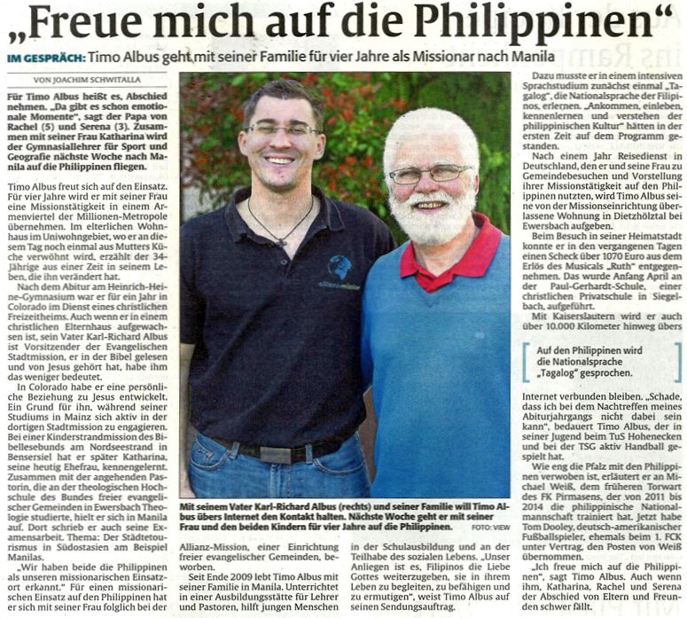 Zeitungsartikel aus der Rheinpfalz vom 11.04.2014