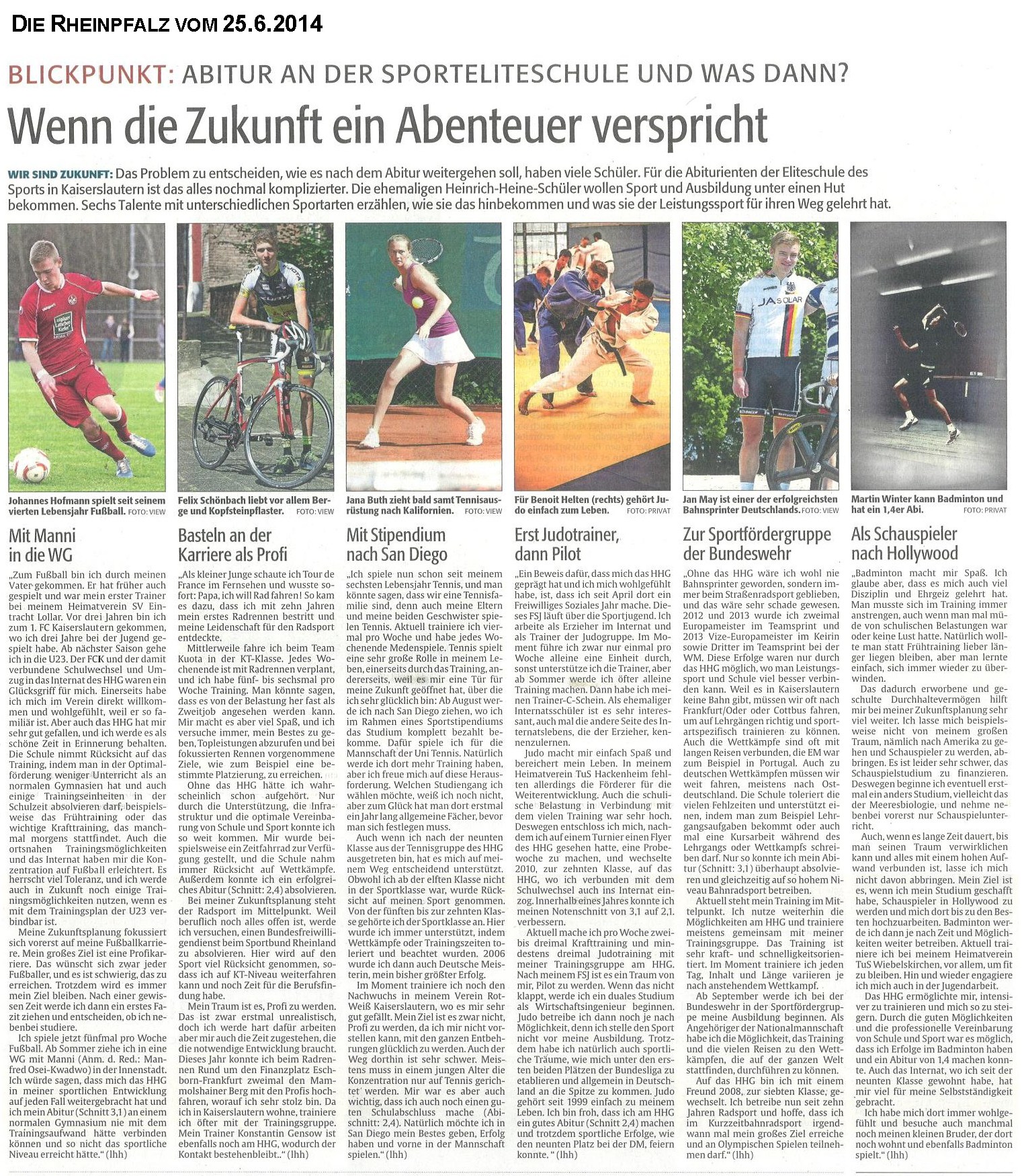 Zeitungsartikel aus der Rheinpfalz vom 25.06.2014