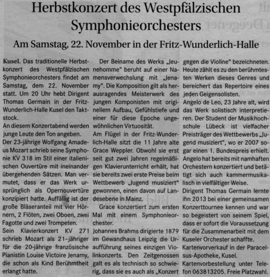 Herbstkonzert des Westpfälzischen Symphonieorchesters