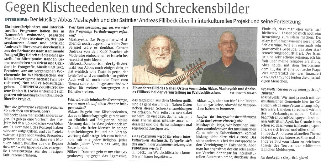 Zeitungsartikel aus der Rheinpfalz vom 14.02.2015.
