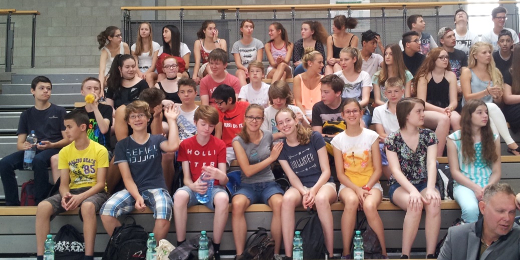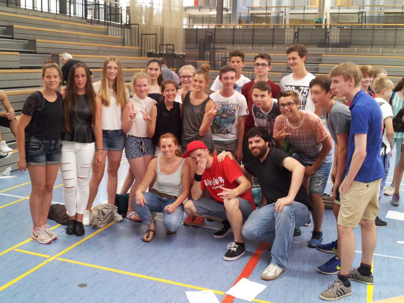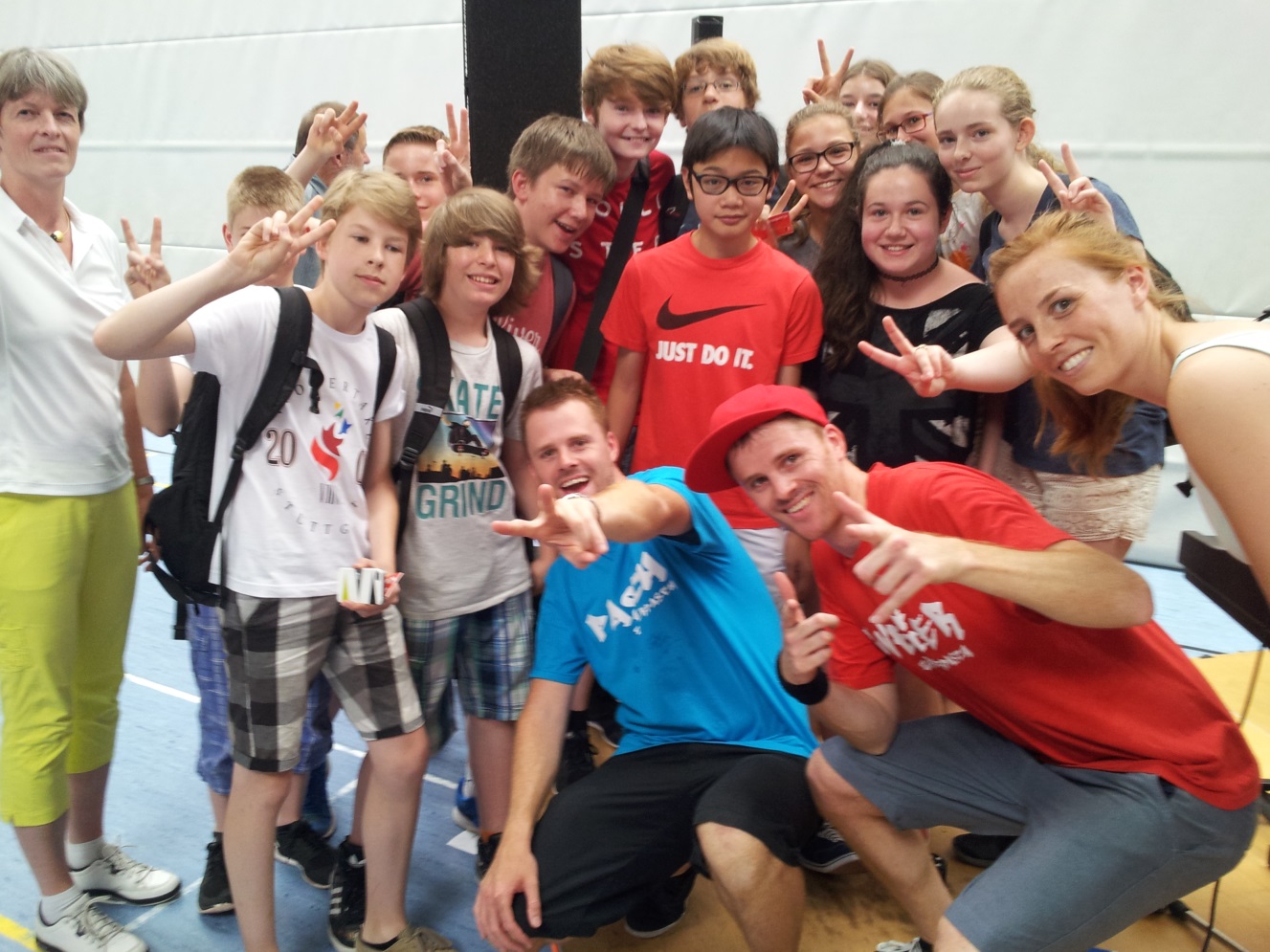 (Bl) Saarbrücken war das Ziel der Französischgruppen der Klassen 8h und 9s1s2. Mit Frau Blauth-Becker und Frau Zugck folgten einer Einladung zu einem Konzert des HipHop-Duos „Zweierpasch / Double Deux“ in der „Joachim-Deckarm-Halle“.