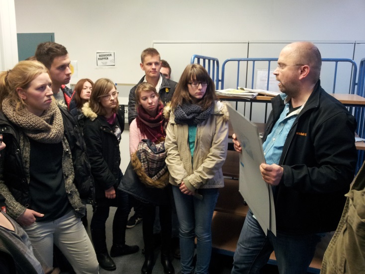 In der Frankfurter Zentralredaktion gab Peter Penders, Stellvertretender Redaktionsleiter Sport und Spezialist für Fußball, Hockey, Tennis und Ski alpin der Gruppe einen Einblick in die redaktionelle Arbeit einer überregional bedeutenden Zeitung. Dabei war es der Wunsch der Schüler, mit einem Sportredakteur zu sprechen. Die besonderen Herausforderungen für Redakteure sowie die logistischen und redaktionellen Herausforderungen waren Gegenstand seiner Information und des Gesprächs mit den Schülern. Im beeindruckenden Druckzentrum in Mörfelden konnten die Schüler und ihr Lehrer beobachten, wie die erste Ausgabe gedruckt und für den Versand vorbereitet wurde. Alle erhielten zum Abschied ein druckfrisches Exemplar der F.A.Z vom folgenden Tag.