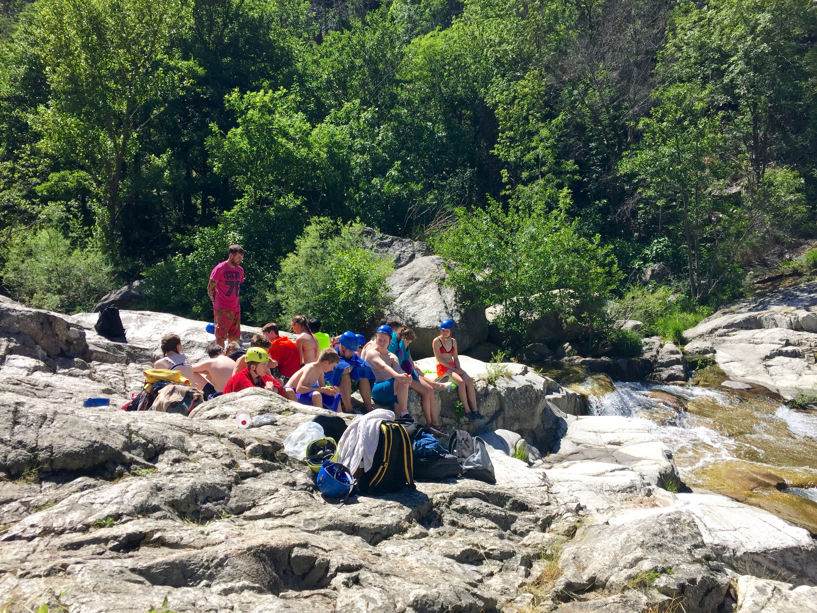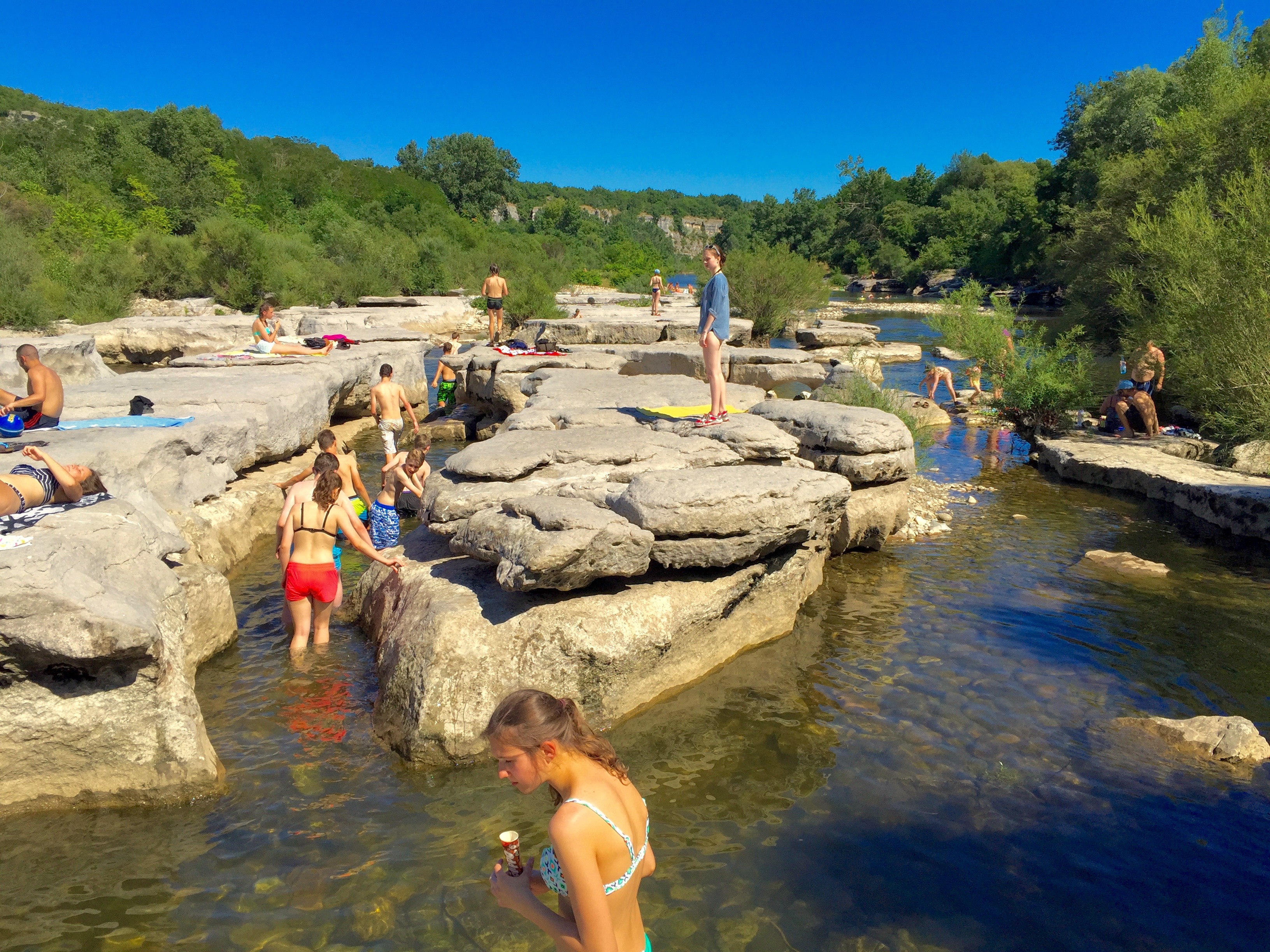 In der Woche vom Sonntag, den 3. Juli 2016, bis Samstag, den 9. Juli begab sich die Klasse 10h mit der Klassenleiterin Frau Blauth-Becker und ihrer Stellvertreterin Frau Burket auf eine lang ersehnte Klassenfahrt nach Südfrankreich zum Chassezac, einem Nebenfluss der Ardèche. Nach einer 12-stündigen Hinfahrt freuten wir uns sehr auf den Campingplatz Le Vieux Moulin Camping. Als Schlafmöglichkeit wurden uns sogenannte Mobilhomes zugeteilt. Ausgestattet von einer Küchenzeile und einem kleinen Bad mit Dusche haben wir uns in den wohnwagenähnlichen Häuschen sehr wohl gefühlt.