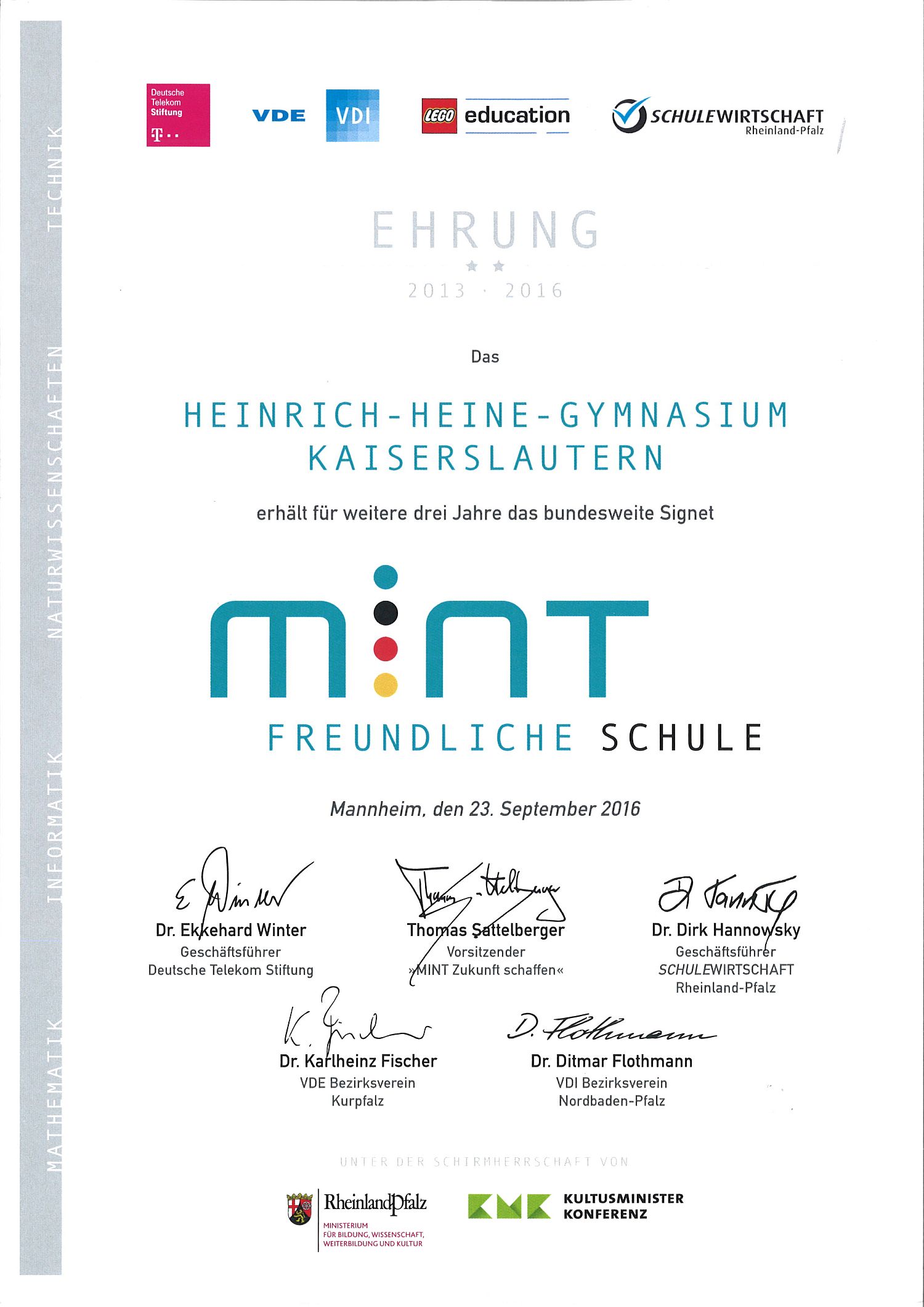 HHG bleibt weiterhin MINT freundliche Schule