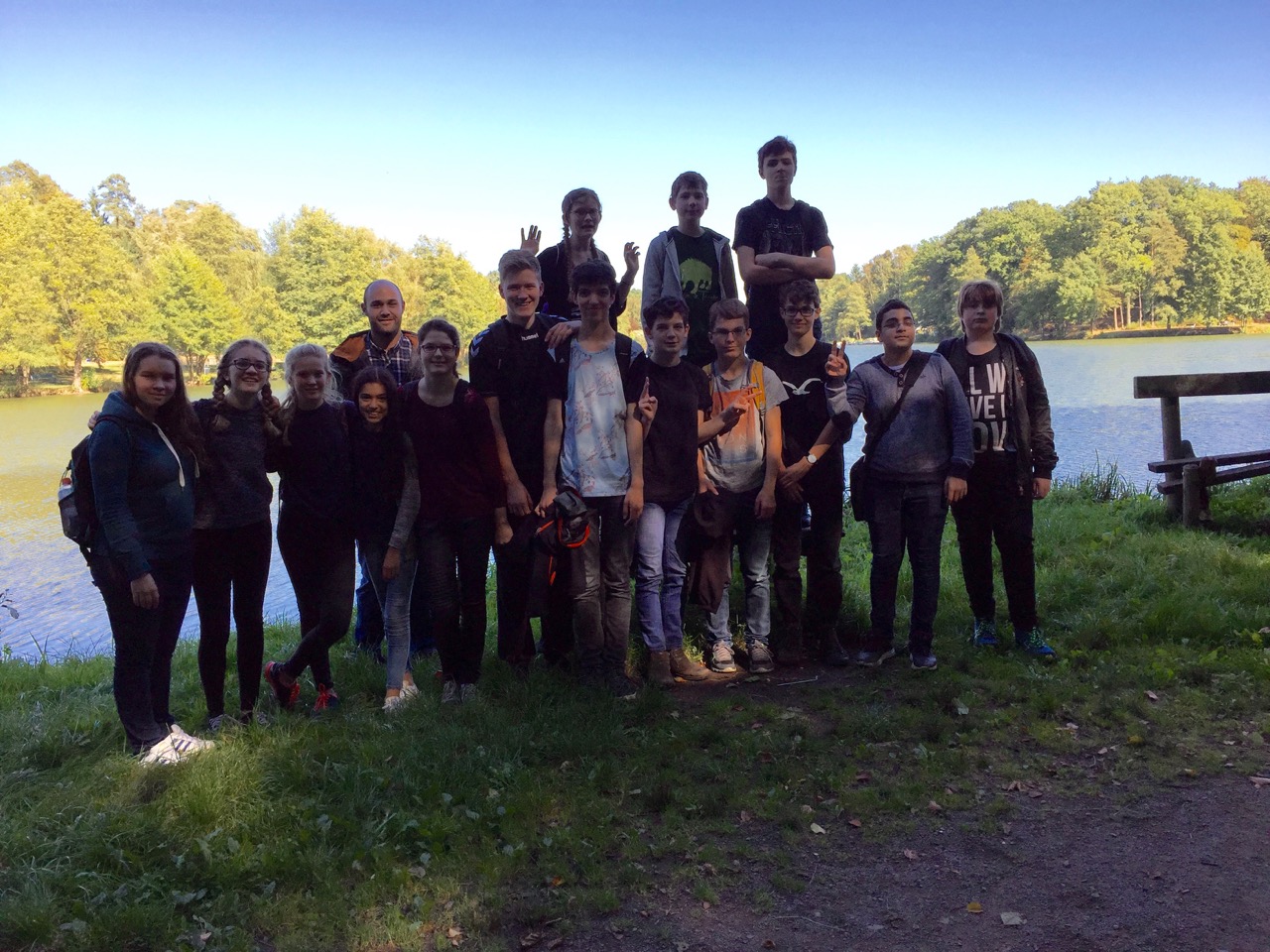 Am Donnerstag, 29. September trafen wir uns alle am Hauptbahnhof Kaiserslautern und fuhren zusammen mit dem Zug nach Homburg (Saar), um im Anschluss in den Bus zum Kletterpark am Jägersburger Schlossweiher umzusteigen.
