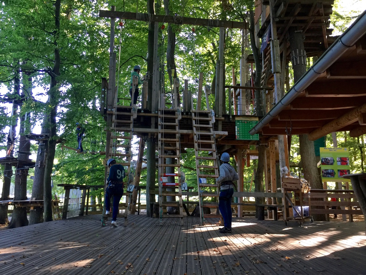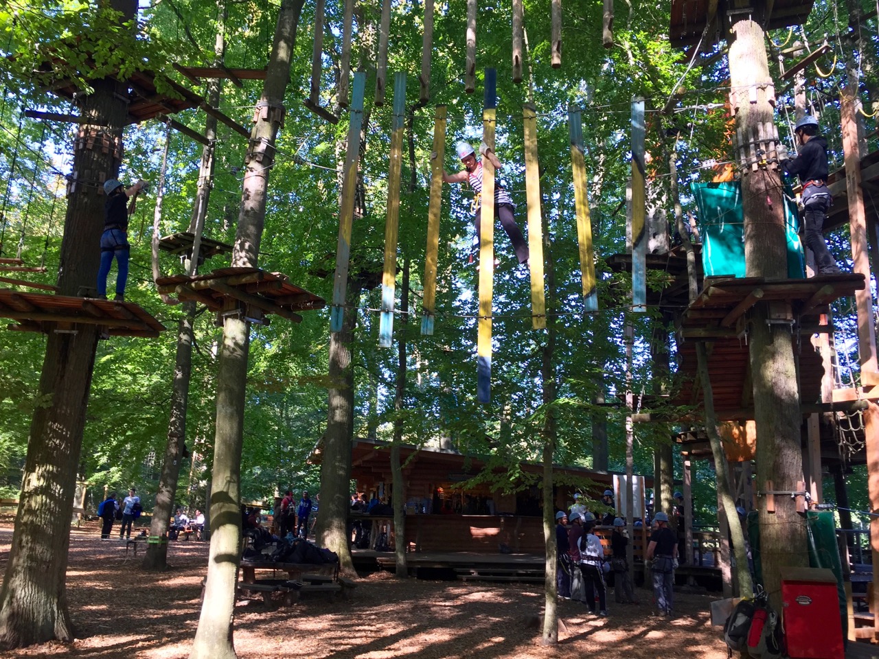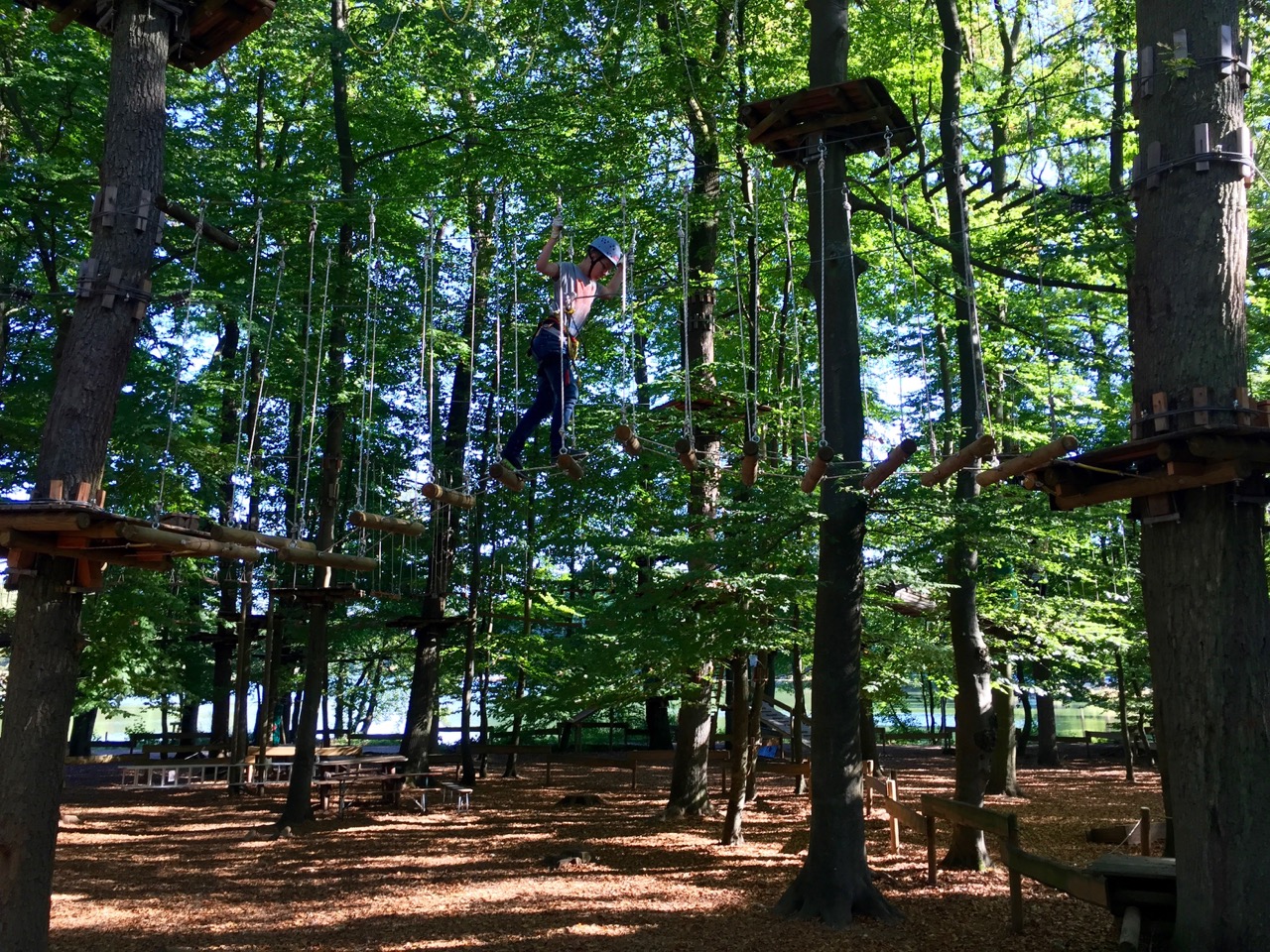Auf insgesamt 6 verschiedenen Parcours war das Motto: gespannt von Baum zu Baum, klettern und balancieren, sich durch eine Welt aus Tauen, Balken und Stahlseilen bewegen. Die Natur aus einer völlig neuen Perspektive genießen, Herausforderungen annehmen und sich einklinken in spannende Abenteuer – wie Tarzan durch die Lüfte schweben und die Freude an der eigenen Leistung spüren.