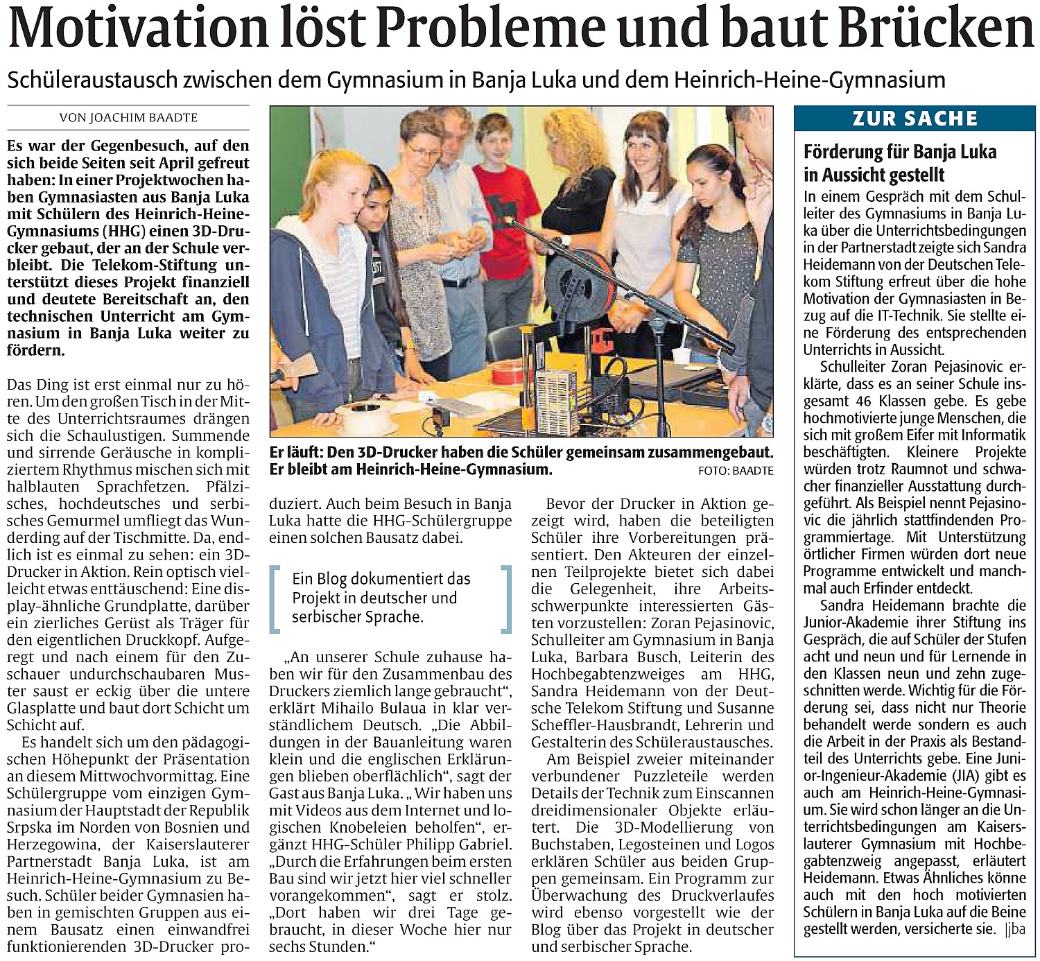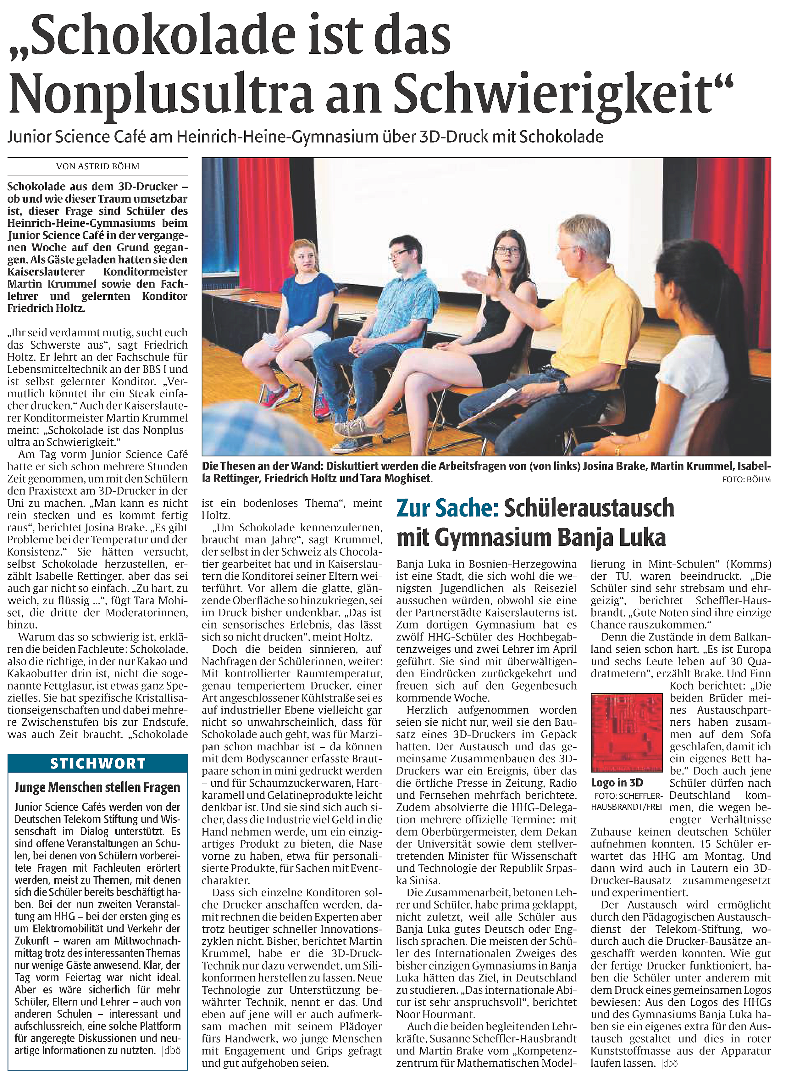 Zeitungsartikel aus der Rheinpfalz (Marktplatz) vom 17.06.2017