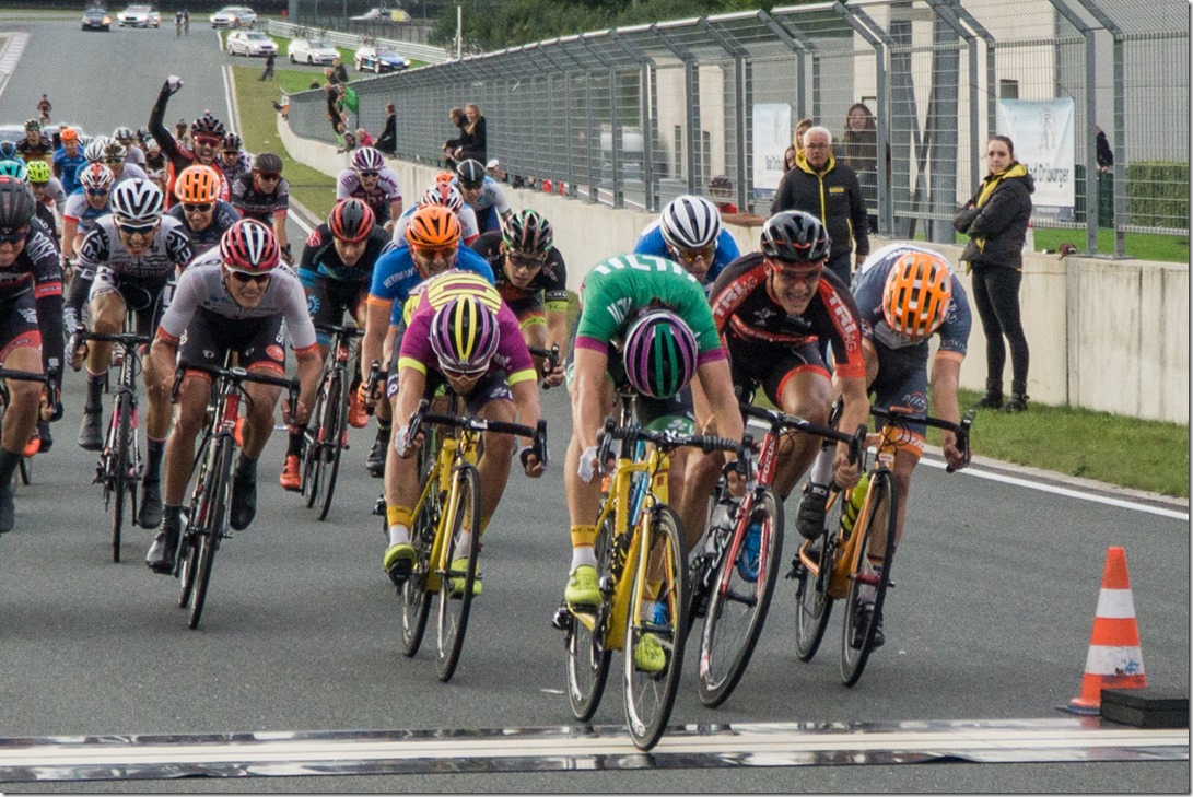 Bei den Herren sicherte sich Raphael Freienstein (grünes Trikot im Bild) in einem dramatischen Fotofinish den Tages- und Gesamtsieg