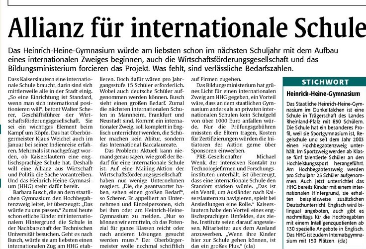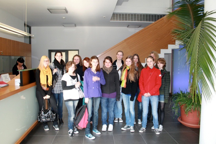 Am 14.04.2011 besuchten wir, die „Girls“ der Klasse 10h, mit Frau Scheffler-Hausbrandt das DFKI (Deutsches Forschungszentrum für Künstliche Intelligenz). Zu Beginn wurden wir sehr freundlich von den Mitarbeitern des Instituts empfangen, wodurch von Anfang an eine lockere Atmosphäre herrschte. Anschließend bekamen wir einen groben Überblick über KI (künstliche Intelligenz). Die uns durch den Tag führenden Studentinnen stellten sich kurz vor und gaben uns unter anderem einen Einblick in das BWL-tQ Studium (Betriebswirtschafts-lehre mit technischer Qualifikation). Vor unserer darauffolgenden Pause, die wir in der Barbarossa-Bäckerei mit einem kleinen Snack verbrachten, wurden wir von der Radioreporterin Bettina Wettstein von SWR3 interviewt, die uns zudem den ganzen Vormittag begleitete. Die geschnittene Zusammenfassung wurde noch am gleichen Tag auf SWR3 gesendet.