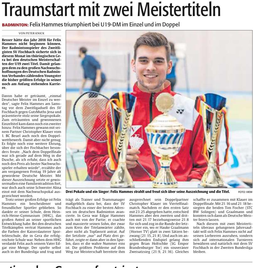 Badminton: Traumstart mit zwei Meistertiteln