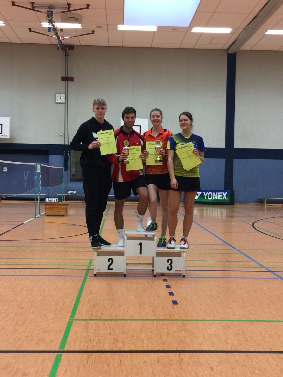 Nils Rogenwieser vom 1. BCW Hütschenhausen erreichte gleich zwei Podiumsplätze. Er wurde im Herreneinzel (HE) Dritter sowie im Doppel (HD) mit seinem Mitschüler Matti-Lukka Bahro Zweiter. Der ehemalige Schüler des HHG, Lukas Junker, spielte sich mit seiner Thüringer Partnerin im gemischten Doppel (GD) bis ins Finale, wurde dort ebenfalls Vizemeister in der Juniorenklasse. In den Einzeln qualifizierten sich die besten Acht, in den Doppeln die besten Sechs, für die Deutschen Meisterschaften. Junker (GD, HE) und Rogenwieser (HD, HE) sind dabei.