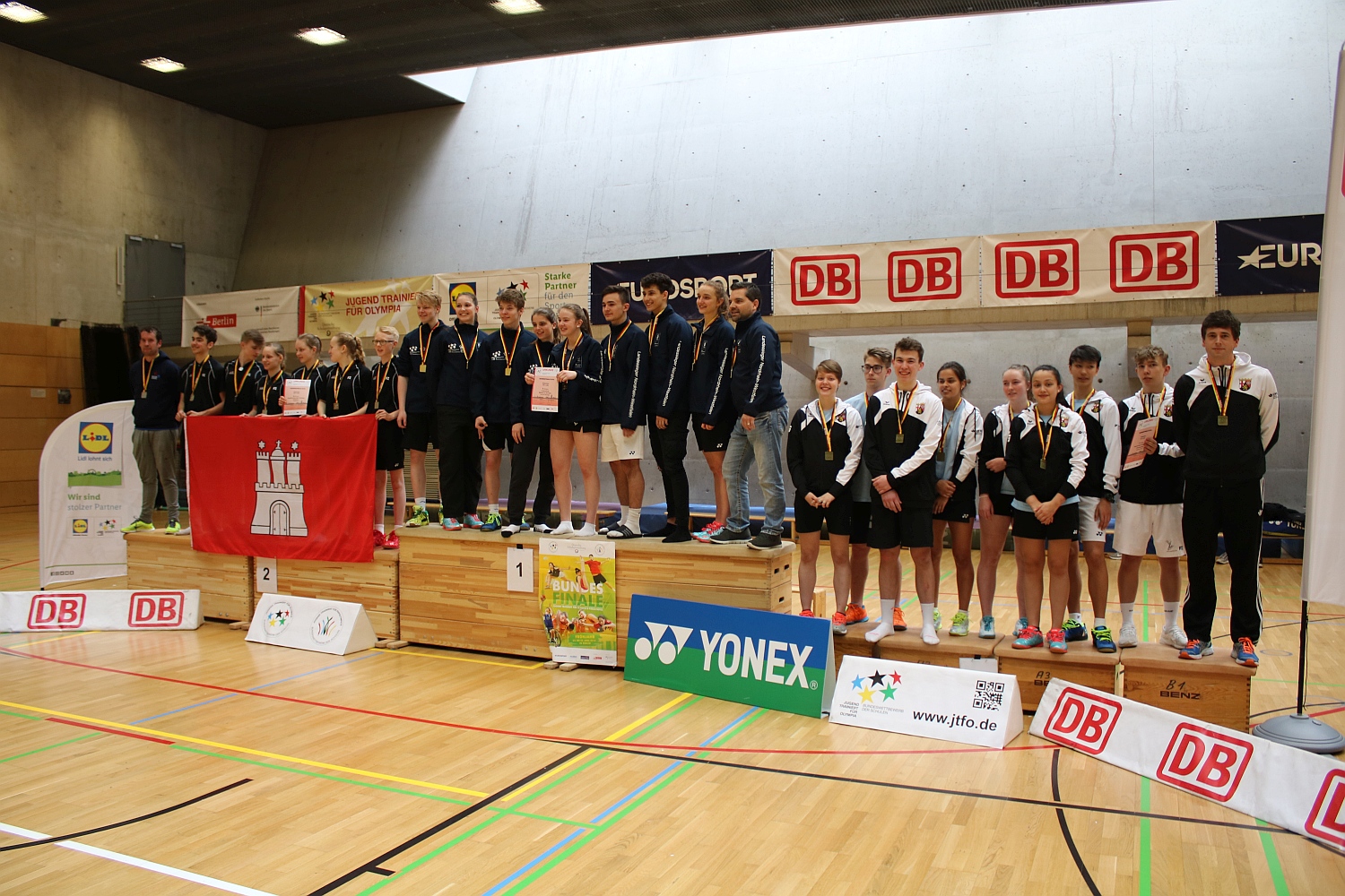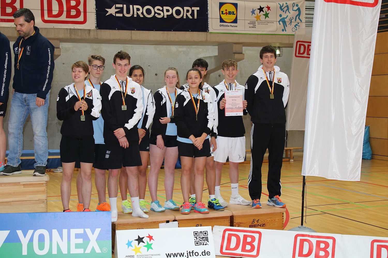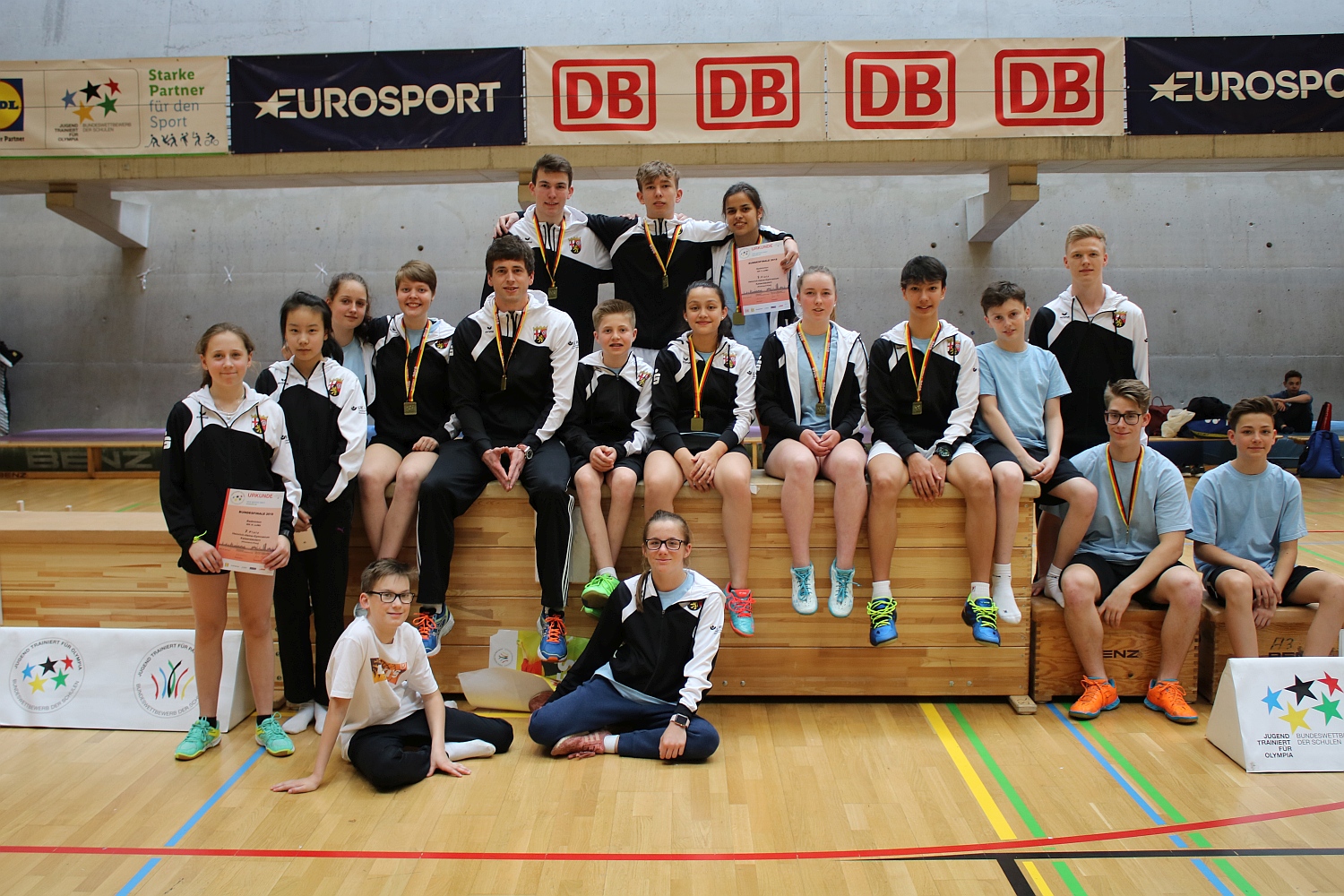 Mit der Bronzemedaille für die Mannschaft der Wettkampfklasse (WK) II (Jahrgang 2001-2004) und einem siebten Platz in der Wettkampfklasse III (Jahrgang 2003-2006) kehren die Badmintonspielerinnen und Spieler des Heinrich-Heine-Gymnasiums Kaiserslautern, Eliteschule des Sports, vom diesjährigen Bundesfinale des Schulwettbewerbs „Jugend trainiert für Olympia“ aus Berlin zurück. Die WK II sorgt damit für die zweite Medaille aller ausgetragenen Sportarten beim Frühjahrsfinale für das Bundesland Rheinland-Pfalz.