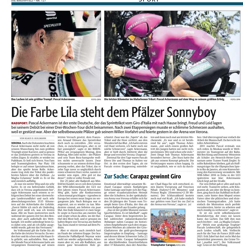 Radsport: Pascal Ackermann gewinnt das Punktetrikot beim Giro