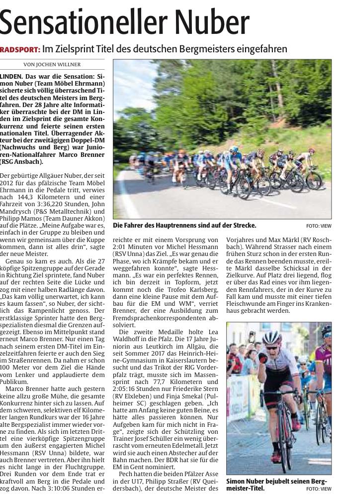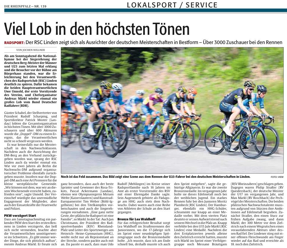 Bericht der Rheinpfalz (Hauptsport - Ausgabe vom 17.6) mit freundlicher Genehmigung der Rheinpfalz und von View
