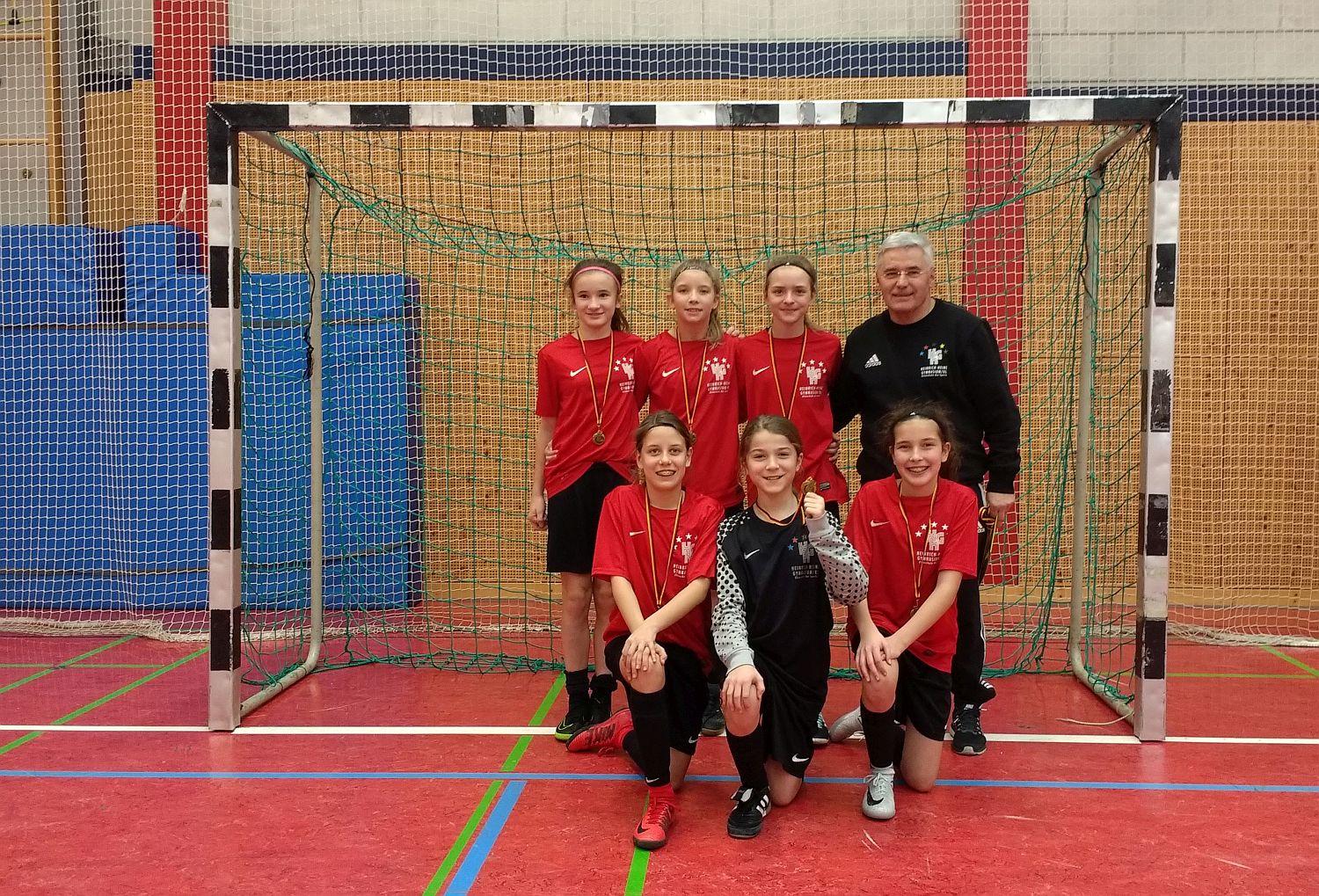 Im Regionalfinale des Fritz-Walter-Cups am 19.02.2018 in der Sporthalle der Schillerschule Kaiserslautern sicherten sich die HHG-Mädchen einmal mehr den ungefährdeten Einzug ins Landesfinale. Das HHG konnte zunächst seine beiden Vorrundenspiele souverän mit 3:1 und 6:1 gegen die Teams aus Oppenheim und Landau gewinnen und ließ auch dem Halbfinalgegner mit einem sicheren 3:0 Sieg keine Chance. Im anschließenden Finale machten die Mädels dann auch den Turniersieg mit schönem Kombinationsfußball klar und können nun beim Landesfinale am 19.03.2018 mit einer gesunden Portion Selbstvertrauen das Projekt „Titelverteidigung“ angehen.