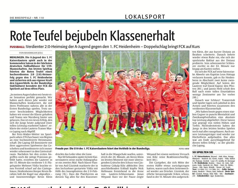 Fußball: Klassenerhalt für die U 19 in der Bundesliga