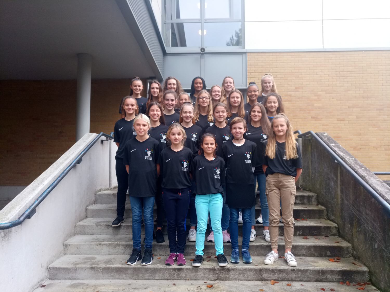Bereits seit vielen Jahren verzeichnen die Fußballerinnen des HHG große Erfolge bei den Schulmeisterschaften von „Jugend trainiert für Olympia“ sowie dem „Fritz-Walter-Cup“. Mädchenfußballteams des Heinrich-Heine-Gymnasiums ver-treten seit geraumer Zeit jährlich das Bundesland Rheinland-Pfalz bei den natio-nalen Finalturnieren in Berlin und Bad Blankenburg. Als Anerkennung erhielt nun jede unserer Fußballerinnen ein einheitliches HHG-T-Shirt. Der Schulfußball-zweig des HHG möchte zu dieser Gelegenheit einen besonderen Dank an die be-teiligten Personen aussprechen. Zum einen geht dieser an unsere Athletinnen, die die sportliche Erfolgsgeschichte durch ihr hohes Engagement überhaupt erst ermöglicht haben. Zum anderen ergeht ein besonderer Dank an die Firma Zinsmeister-Immobilien aus Altenglan sowie den Förderverein des HHG, die die Finanzierung der T-Shirts erst ermöglicht haben. Das Foto zeigt einen Großteil der Fußballerinnen des HHG mit den neuen T-Shirts nach der Übergabe.