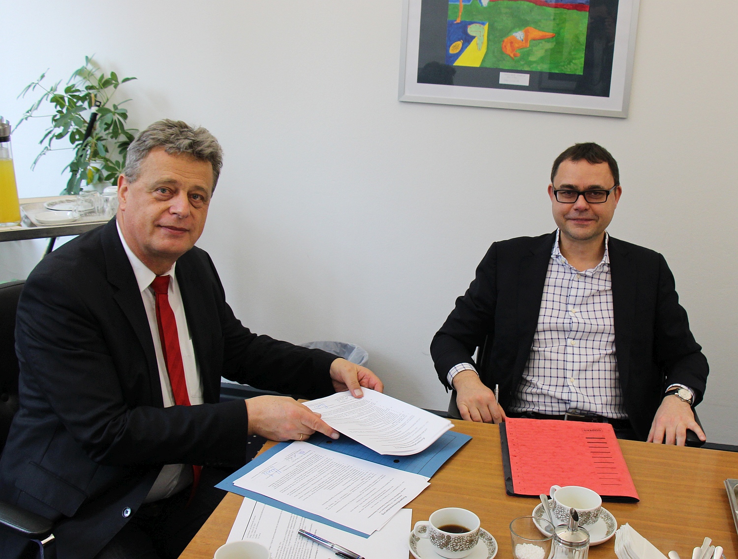 Michael Klatt und Dr. Ulrich Becker bei der Unterzeichnung der Vereinbarung