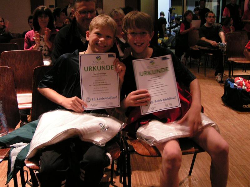 Felix Krumbiegel und Jakob Knuff liefen gemeinsam die 5km und erreichten das Ziel nach 23:21,1 und 23:22,0 Minuten. In der 5km Teilnehmerliste mit 40 Teilnehmern belegten die beiden damit Platz 12 und 13. Dies sind für ihr Alter wirklich tolle Platzierungen und Zeugnis ihres sportlichen Lauftalentes. In ihren Altersklassen Schüler B und Schüler C konnten sie damit jeweils den 1. Platz belegen.