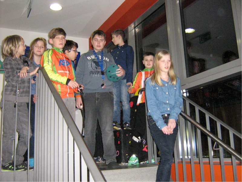 Mensch- ärgere- dich- nicht mal anders. Die Teams hatten die Aufgabe, nach den Regeln des bekannten Brettspieles, die 37 Stufen des Treppenhauses zu bewältigen, um gemeinsam als Team im Keller ins Ziel zu gelangen. Und damit es nicht zu einfach für die Teilnehmer wurde, galt es Fragen aus den Kategorien Medien, Tierwelt, Sport, Mathematik, Erdkunde und einige gemeine Scherzfragen zu lösen.