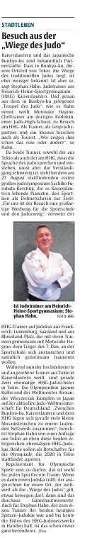 Judo: Besuch aus der "Wiege des Judos" - Judoevent am Dienstag