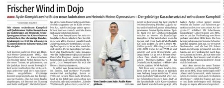 Seit kurzem weht im Dojo am Heinrich-Heine-Gymnasium HHG, an der Sporteliteschule in Kaiserslautern, ein frischer Wind. Aydin Kempirbaev, der neue Trainer, ist gekommen, um die Judokas durch mehr Beweglichkeit weiter zu fördern.