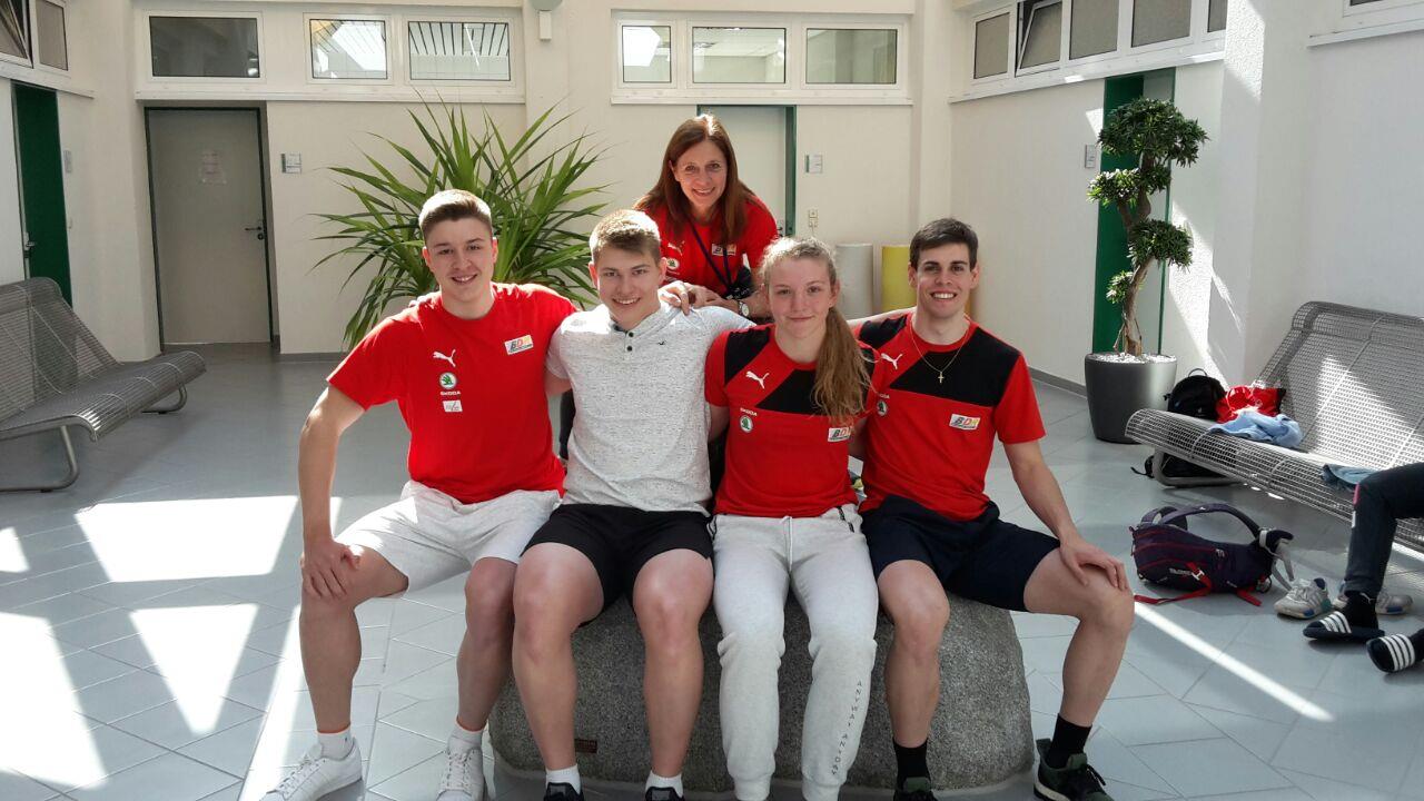 Elias Edbauer, Marius Hannack, Alessa-Catriona Pröpster, Timo Bichler (v.l.n.r.), Physiotherapeutin Alexandra Welte (stehend) Foto: Privat