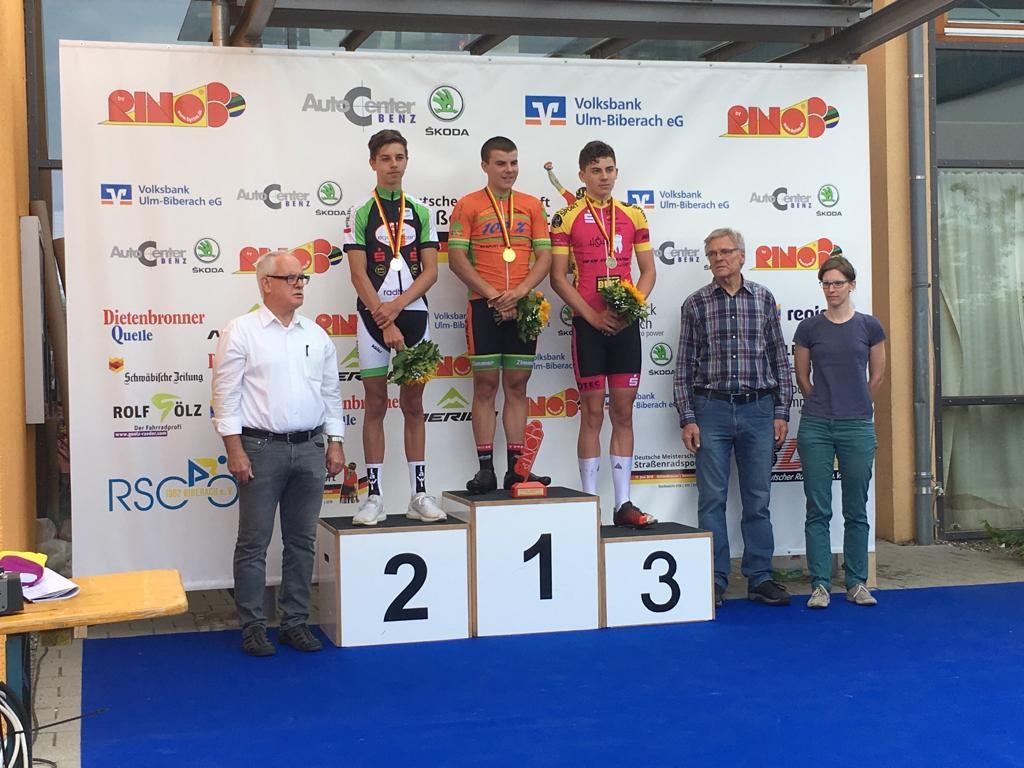 Den kompletten Medaillensatz gab es für die HHG-Radsportler bei den Deutschen Nachwuchsstraßenmeisterschaften in Biberach und Holzwickede.
