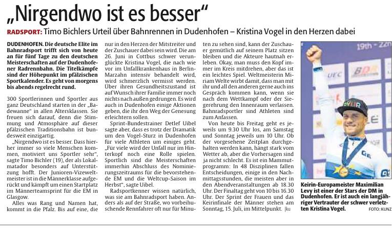 Radsport: Bahn-DM in Dudenhofen beginnt Mit freundlicher Genehmigung der Rheinpfalz (Ausgabe 11.07.2018) und von Klaus Kullmann und Kunz