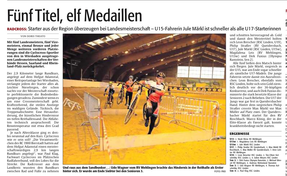 Radsport: Erfolgreiche Landesmeisterschaft Mit freundlicher Genehmigung der Rheinpfalz (28.11) und Doris Theato