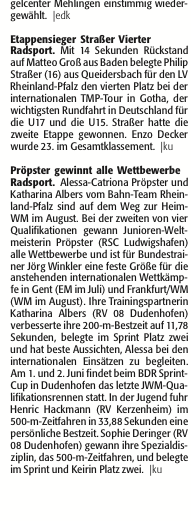 Radsport: Erfolgreiche WM Qualifikation Mit freundlicher Genehmigung der Rheinpfalz und Klaus Kullmann