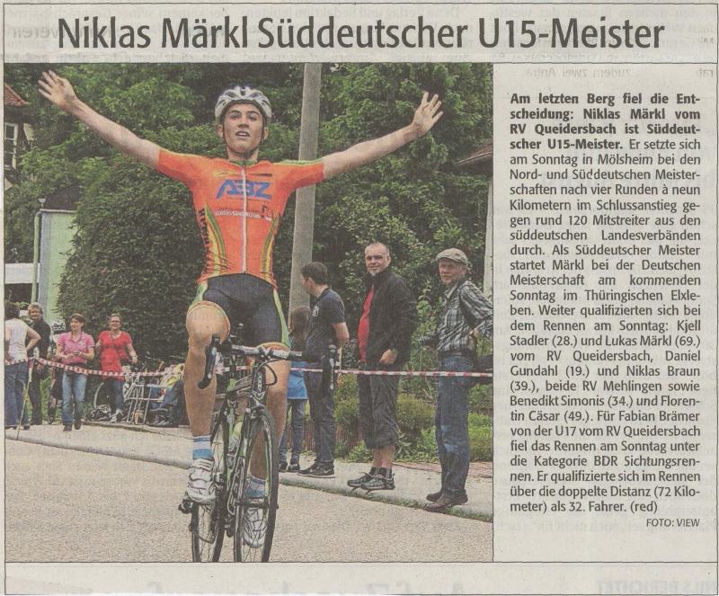 Radsport: Niklas Märkl Süddeutscher U15-Meister