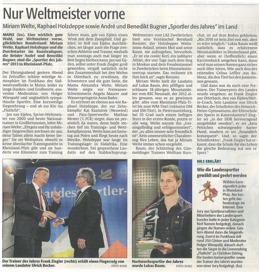 Zeitungsartikel aus der Rheinpfalz vom 13.01.2014