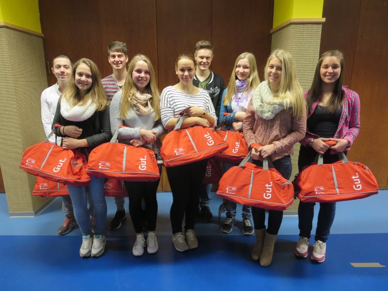 Auch in diesem Jahr stellte der Sparkassen- und Giroverband für die neuen Bundeskader aller Eliteschulen des Sports in Deutschland „Starterkits“ zur Verfügung. Sie beinhalten nützliche Dinge, die den sportlichen und schulischen Alltag angenehmer gestalten, wie z.B. eine Sporttasche, ein großes Badetuch, eine Trinkflasche oder einen USB-Stick. Am Heinrich-Heine Gymnasium wurden die „Starterkits“ an folgende Schülerinnen und Schüler überreicht: