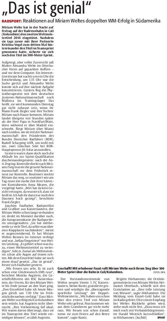 Radsport: "Das ist genial" - Reaktionen auf Miriam Weltes doppelter WM-Erfolg in Südamerika