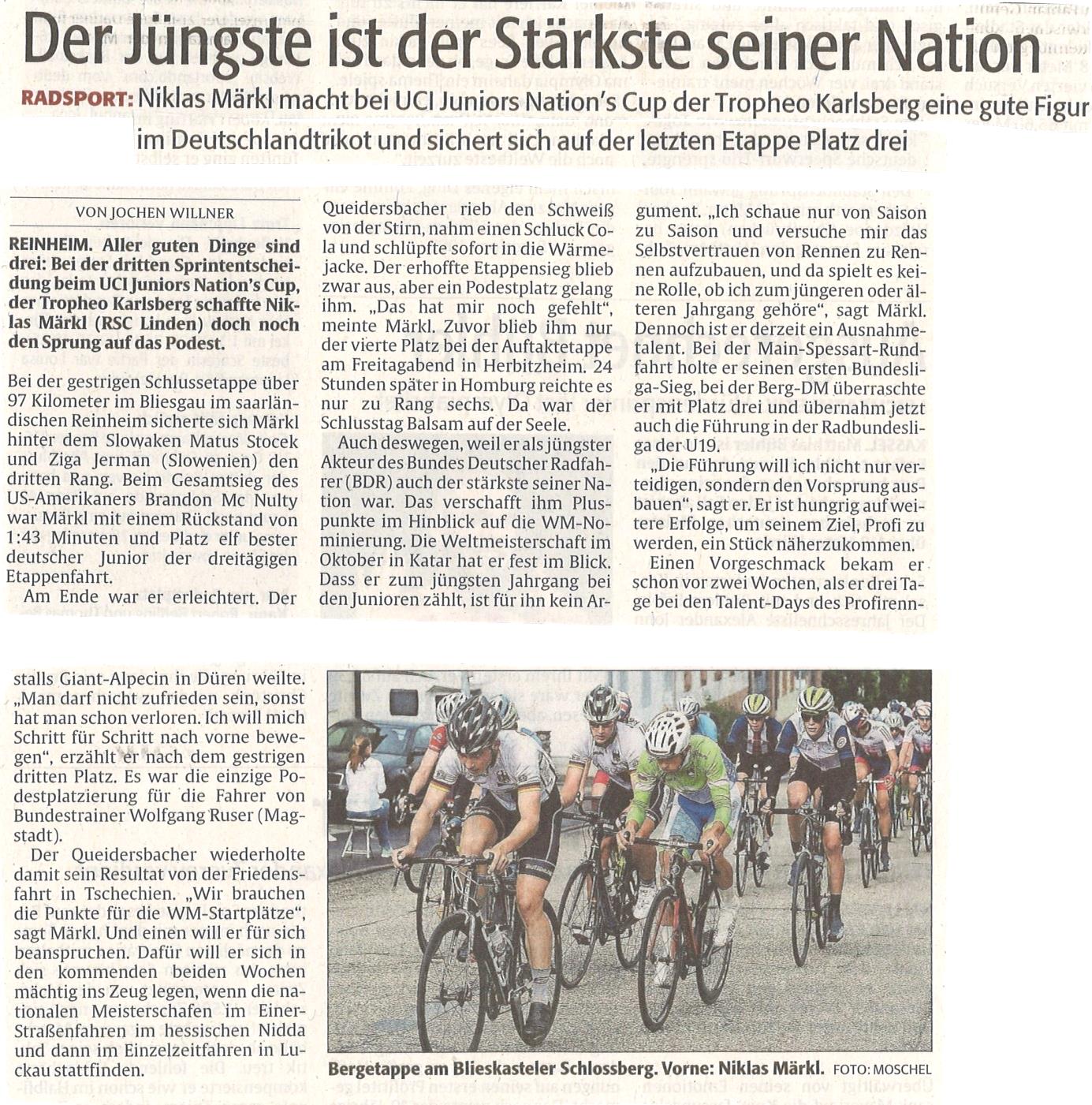 Radsport: Der Jüngste ist der Stärkste seiner Nation Zeitungsartikel aus der Rheinpfalz vom 20.06.2016