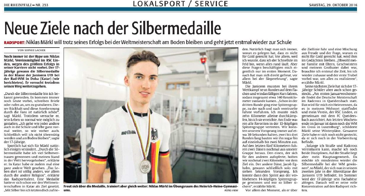 Zeitungsartikel aus der Rheinpfalz vom 19.10.2016