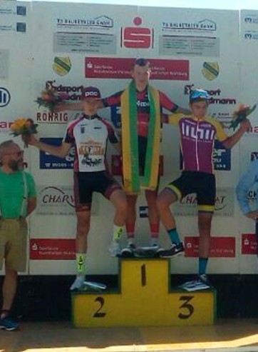Alexander Tarlton (10s1) belegte den 3. Platz beim Bundesligarennen in Karbach. Nach 40 km Fahrt in einer Dreiergruppe musste er kurz vor Schluss abreißen lassen, rettete aber den Podiumsplatz ins Ziel.